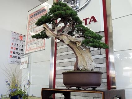 ○…樹齢250年の真柏―。山梨トヨタ(佐々木宏明社長)の韮崎店で異彩を放つ盆栽は、芸術家・秋山実氏(秋山盆栽園・36歳)の作品。氏は「日本盆栽作風展」で盆栽界最高峰の内閣総理大臣賞を3度も受賞する地元出身の作家。同店は地域貢献の一環として...