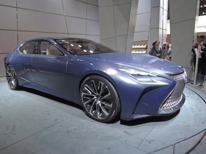 ◆華美に飾らない高級感 レクサスブースの奥で「将来のレクサスフラッグシップカーをイメージした」というコンセプトカーが存在感を放っていた。スピンドルグリルを採用して以降、キャラクターラインが際立つシャープなデザインのイメージが強かったが、「L...