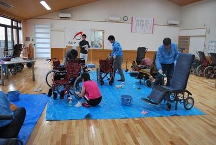 【山形】損害保険ジャパン日本興亜代理店の整備事業者でつくるAIRオートクラブ山形県支部(髙嶋浩之支部長)はこのほど、山形市内にある高齢者介護施設、サンシャイン大森(宮舘哲男理事長)で、車いす清掃点検ボランティア活動を展開した。当日は23人...