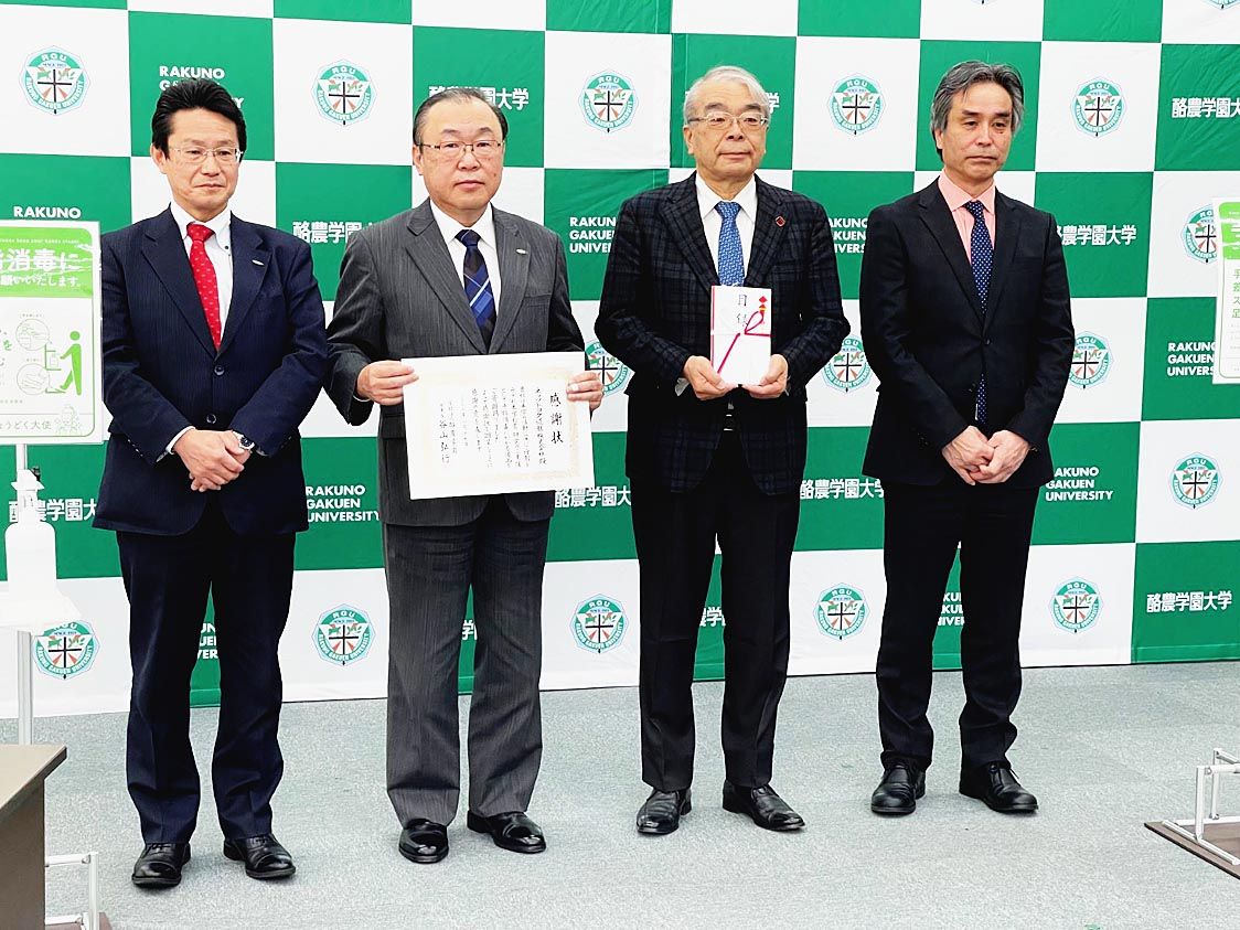 ネッツ道都、足踏み式消毒スタンド 酪農学園大学に寄贈