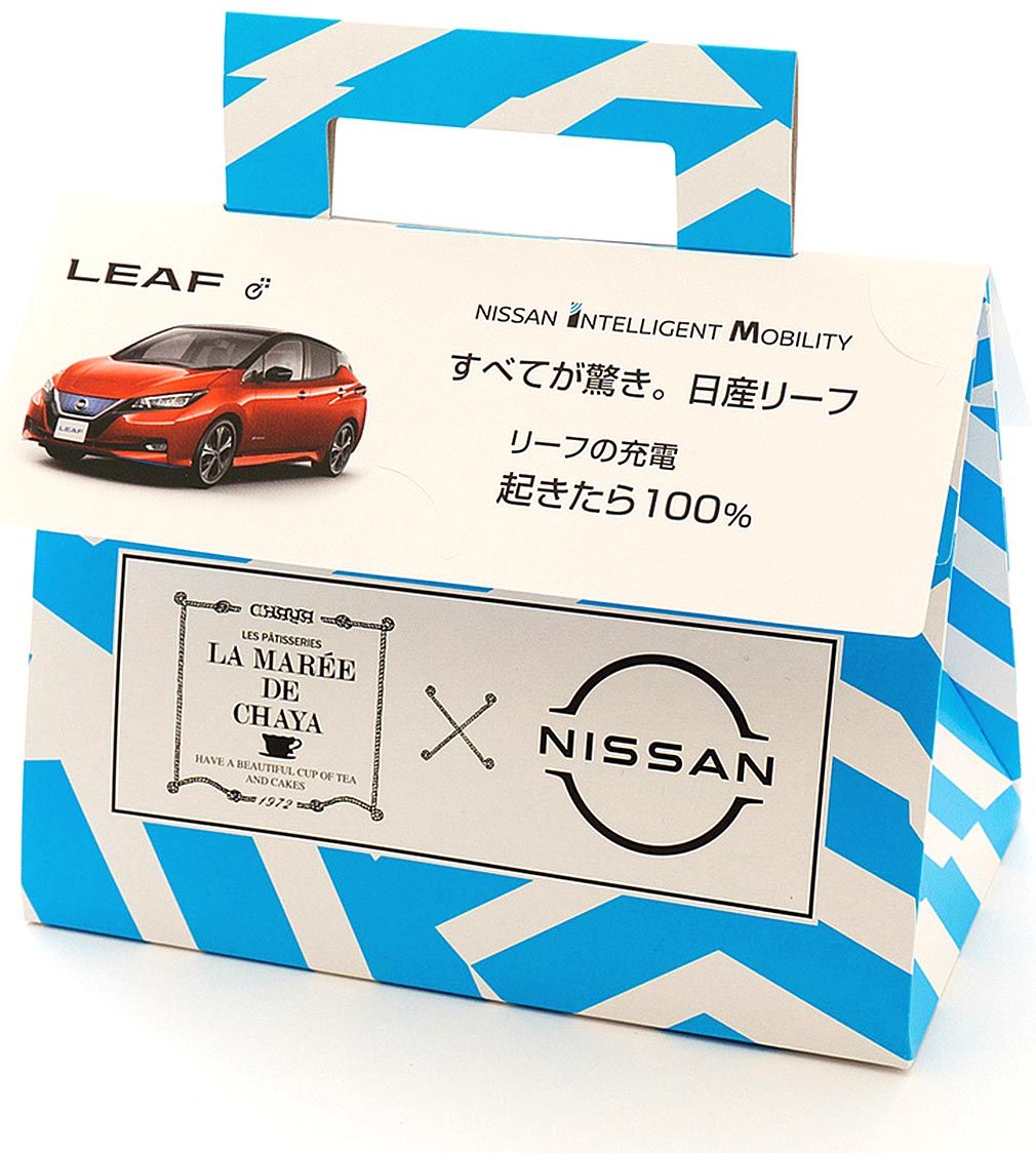 日産自動車は、神奈川県葉山町に店舗を構える日影茶屋との特別コラボレーション商品「NISSAN&CHAYAバックLEAF」を発売したと発表した。日影茶屋が運営する洋菓子店パティスリーラ・マーレ・ド・チャヤの「葉山リーフパイ」を含む焼き菓子詰め合わせと、限定ポストカードを加えた商品セットを日産のデザイナーによる限定パッケージに入れて販売する。価格は1080円(消費税込み)。葉山本店や日産本社ギャラリー内ブティックなどで発売する。