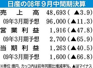 日産自動車の志賀俊之最高執行責任者(COO)は31日、都内の本社で2009年3月期連結業績の下方修正を発表した。通期の連結営業利益は米国の販売減や円高による為替差損、原材料高などの影響で2700億円と前年の3分の1(65・9%減)にまで落...