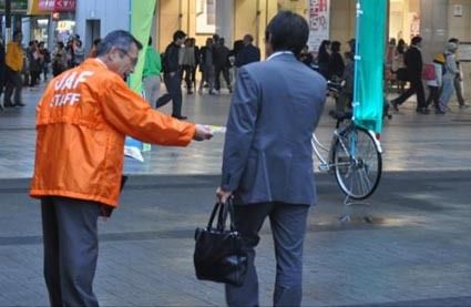 日本自動車連盟(JAF)大阪支部(白土貴久支部長)は9日、JR・京阪京橋駅前で自動車税制改革フォーラム(自動車関連21団体で構成)とともに自動車関係諸税の簡素化とユーザー負担軽減を訴える街頭活動を行った。19人のスタッフが啓発チラシとティ...