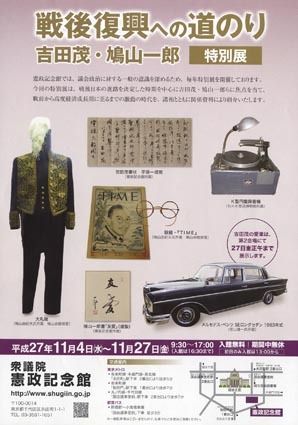 戦後70年を記念して衆議院憲政記念館(東京都千代田区)で27日まで開催中の「特別展・戦後復興への道のり 吉田茂・鳩山一郎」では両首相の愛用した所蔵品や書簡の数々が展示されているが、中でも注目されるのは吉田茂のいわくつき愛車「メルセデス・ベ...