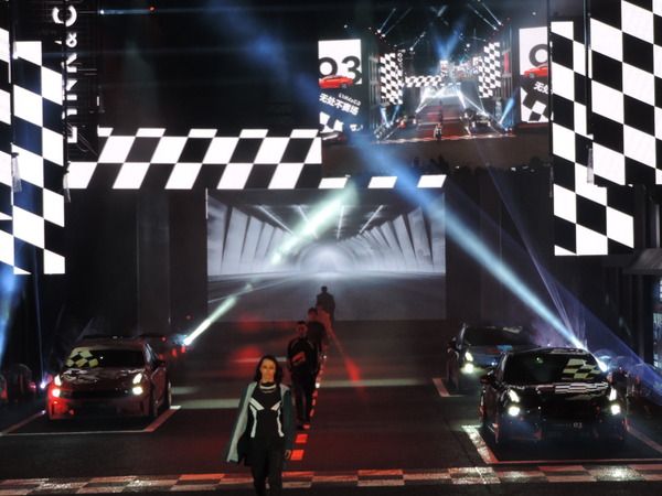 チャーターしたヘリコプターが発表会場の上空を低空飛行してサーキットを走行する新型車をサーチライトとカメラが追う。ステージ上では新型車とともに、モデルの男女が闊歩し、まるでファッションショーだ。新型車の価格を発表すると、発表会に招待された約300人の中国系メディアの記者団が歓声を上げる。新型車発表会でも、伝統的な自動車メーカーとは異なることを強く打ち出した。