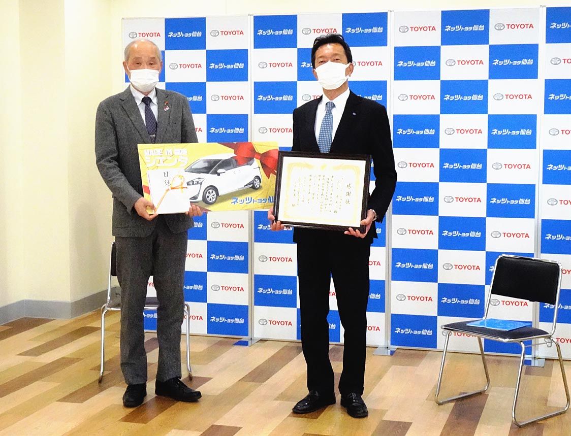 ネッツ仙台、県の共同募金会に車両と寄付金贈呈