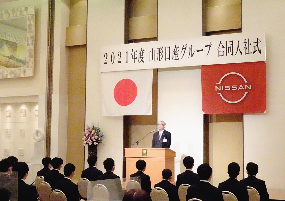 【山形】山形日産(小関眞一社長)を中核会社とする山形日産グループは1日、山形市で「2021年度合同入社式」を開催した。新入社員はグループ全体で22人。小関社長をはじめ役員や保護者が見守る中、新社会人としての第一歩を踏み出した。 入社式で小...