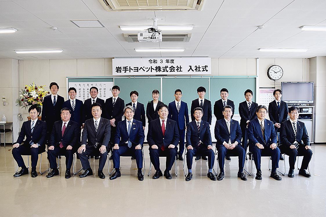 【盛岡】岩手トヨペット(元持雅行社長)は1日、盛岡市の本社で「令和3年度入社式」を開催した。役員が見守る中で、元持社長は新入社員11人に辞令を交付し、社員として迎え入れた。 元持社長は「我々は常にお客さま第一主義の精神で、地域に根差したお...