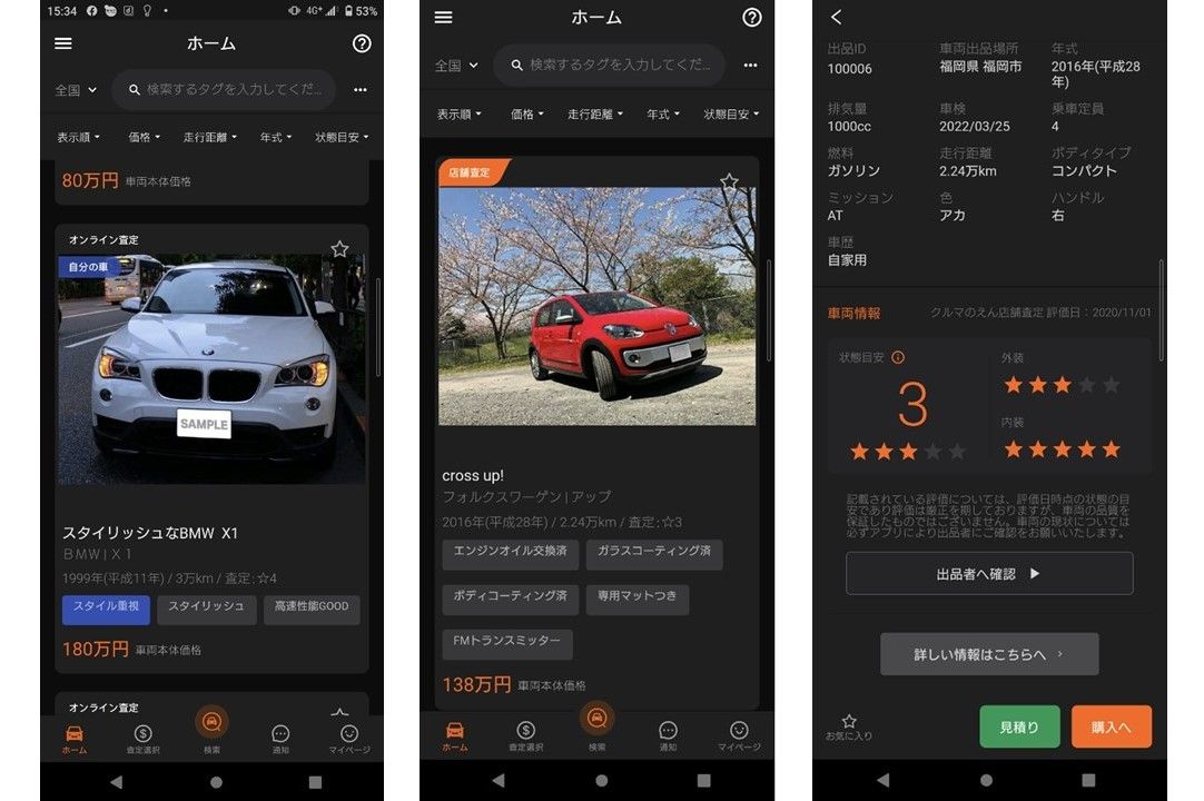 スマートフォン(スマホ)向けアプリとして展開する。同社の買い取り査定システム「査定ドクター」を用いて店頭で金額を算出できるほか、スマホでの簡易査定も可能とした。出品者は査定額を目安に、より成約見込みの高い価格で出品できる。アプリ上では車両が査定済みであることを確認できるマークを表示し、購入希望者の安心感確保にもつなげる。
