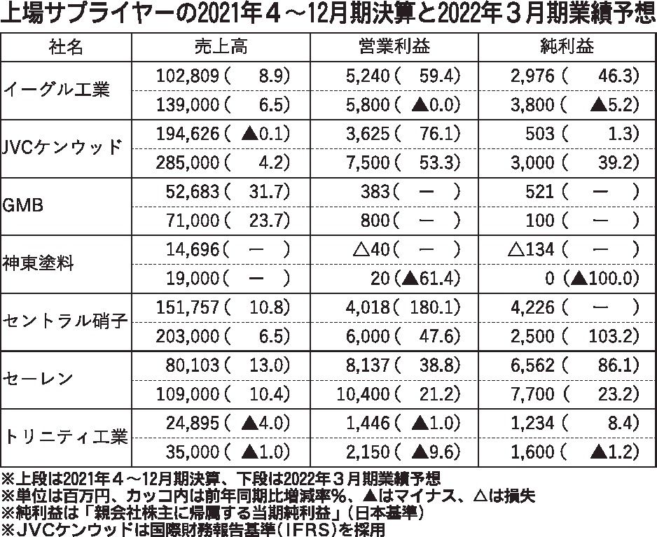 〈上場サプライヤーの2021年4~12月期決算と2022年3月期業績予想〉