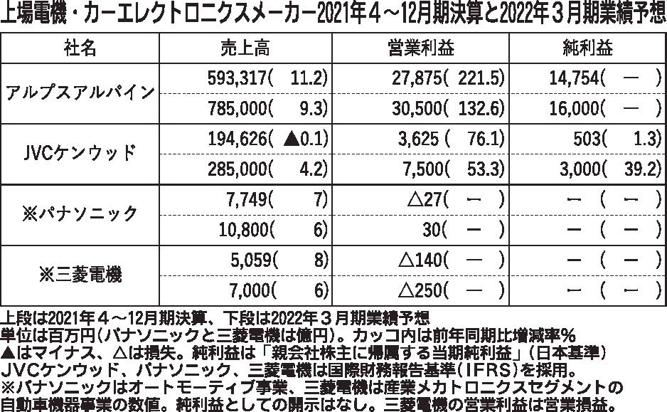 上場する電機・カーエレクトロニクスメーカー4社の2021年4~12月期決算は、新型コロナウイルス変異株の拡大や半導体不足を背景に先行き不透明感が大きく影響する結果となった。アルプスアルパインと三菱電機は、車載関連事業以外の事業が堅調に推移...