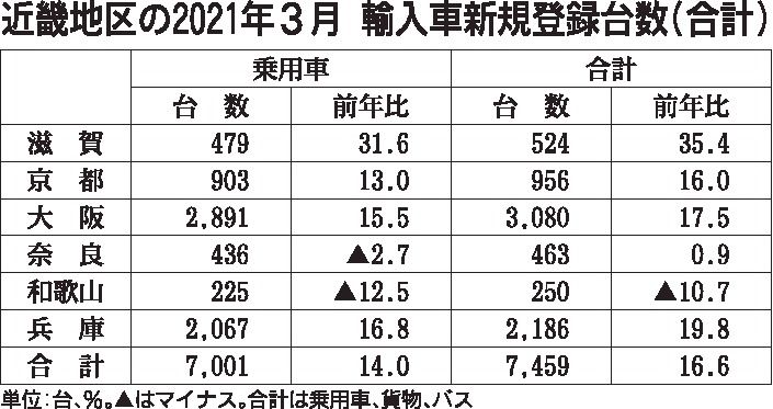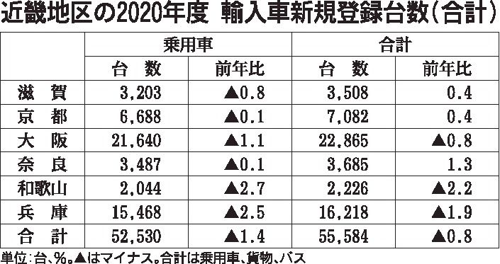 日本自動車輸入組合(JAIA)の発表によると、2020年度(4月~21年3月)の近畿地区の輸入車新規登録台数(外国メーカー車と日本メーカー車)は、前年度比0・8%減の5万5584台となり、2年連続で前の年を下回った。 コロナ禍の影響で営業...