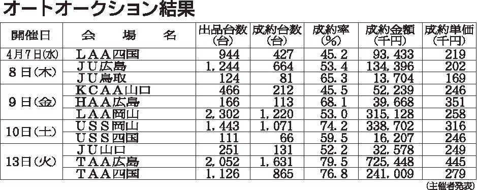 〈オートオークション結果〉中四国地区 2021/4/7~13