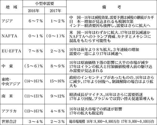 世界の小型車(乗用車+3・5トン未満の小型商用車)需要は、2・1%拡大した2015年に続き16年も約3・3%増の8830万台となり記録を更新。これで7年連続の拡大となった。 17年については初めて9千万台を超えるものと予測されるが、拡大は...