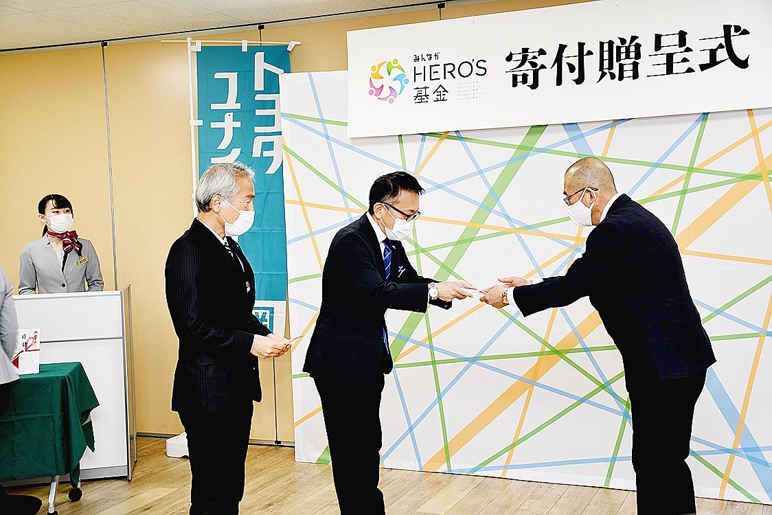 【静岡】トヨタユナイテッド静岡(桝谷安城社長)は、同社が設立した「みんながHERO'S基金」の一部から静岡県内の児童養護施設と児童自立生活援助事業所の計14カ所に、総額140万円の寄付金と図書カード532枚を贈呈した=写真。 同基金は20...