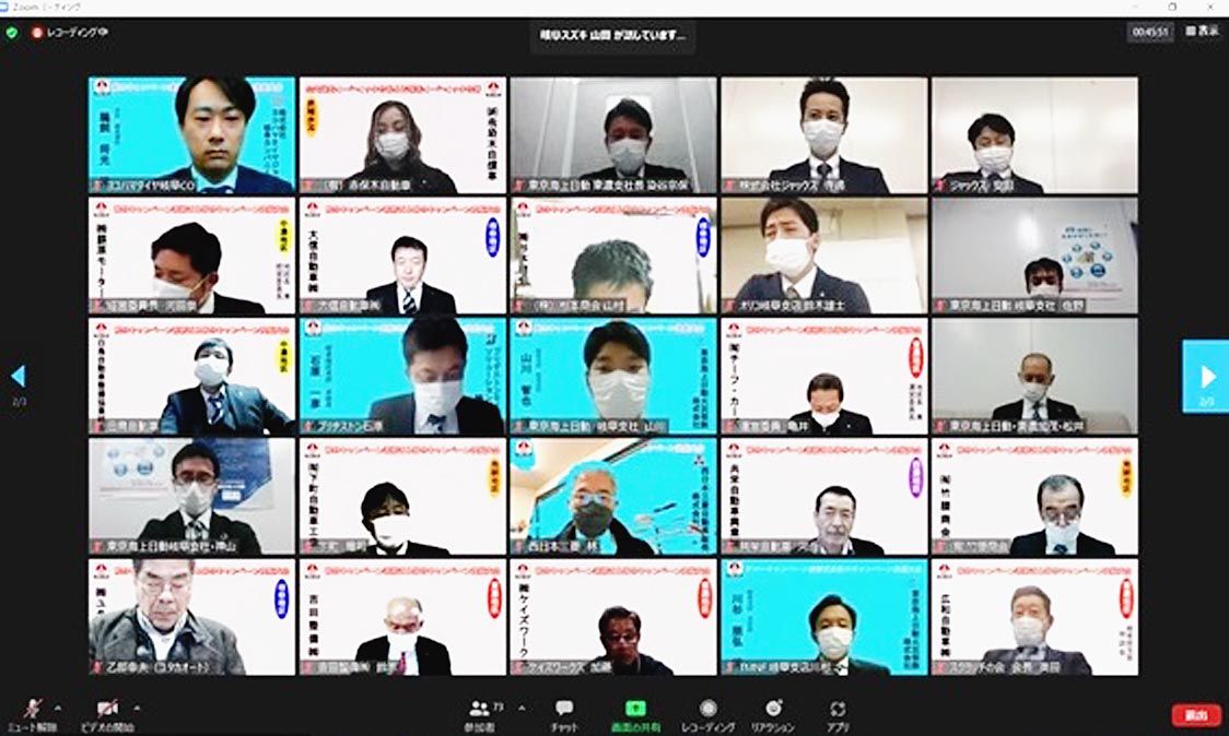 【岐阜】全日本ロータス同友会岐阜県支部(可兒英樹支部長)は、「2021年度秋の総合キャンペーン表彰式」と「同春の総合キャンペーン決起大会」をオンラインで開催した=写真。2月から始まった春の総合キャンペーンは、支部の目標を発表し、約70人の...