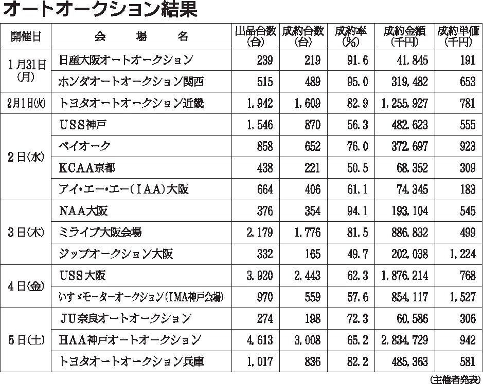 〈オートオークション結果〉関西地区 2022/1/31~2022/2/5