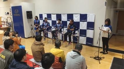 【宇都宮】2015年スーパーGT最終戦(ツインリンクもてぎ)を前に、栃木スバル(小平和正社長)はこのほど、宇都宮店ショールームで「スペシャル ファン ミーティング」を開催し、県内のスバルファンを中心に約110人が来場した。 今回のイベント...
