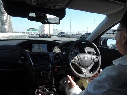 ホンダは、首都高速豊洲インターチェンジ(IC)から葛西ICまでの往復約16キロメートルの区間で自動運転のデモンストレーションを行った。本線に進入してから自動運転に切り替え、自動合流、車線維持、自動分岐して折り返すというコースだ。 今回用い...