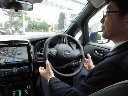 日産自動車が開発した自動運転の実験車両の一般公道でのテストに同乗試乗した。日産の電気自動車「リーフ」をベースに改造した自動運転車両で、東京のお台場地区の一般道路約17キロメートルを自動で走行した。 手動で走行を開始してから自動運転を開始す...