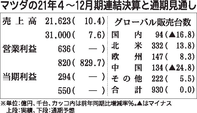 21年4~12月期は営業利益が637億円(前年は320億円の損失)と2年ぶりに黒字転換した。半導体コストや原材料価格高騰などの減益要因に対し、販売費用の抑制や固定費効率化などの構造改革の効果が表れた。
