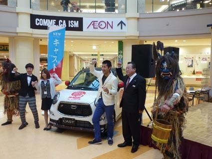 あなたを、日本を、おもしろく―。 秋田ダイハツ(中田利光社長)はこのほど、イオンモール秋田(秋田市御所野)で新型車「キャスト」シリーズの販促イベントを開催した。ダイハツ工業と吉本興業が進める地域密着型イベントで、吉本の「住みます芸人・ちぇ...
