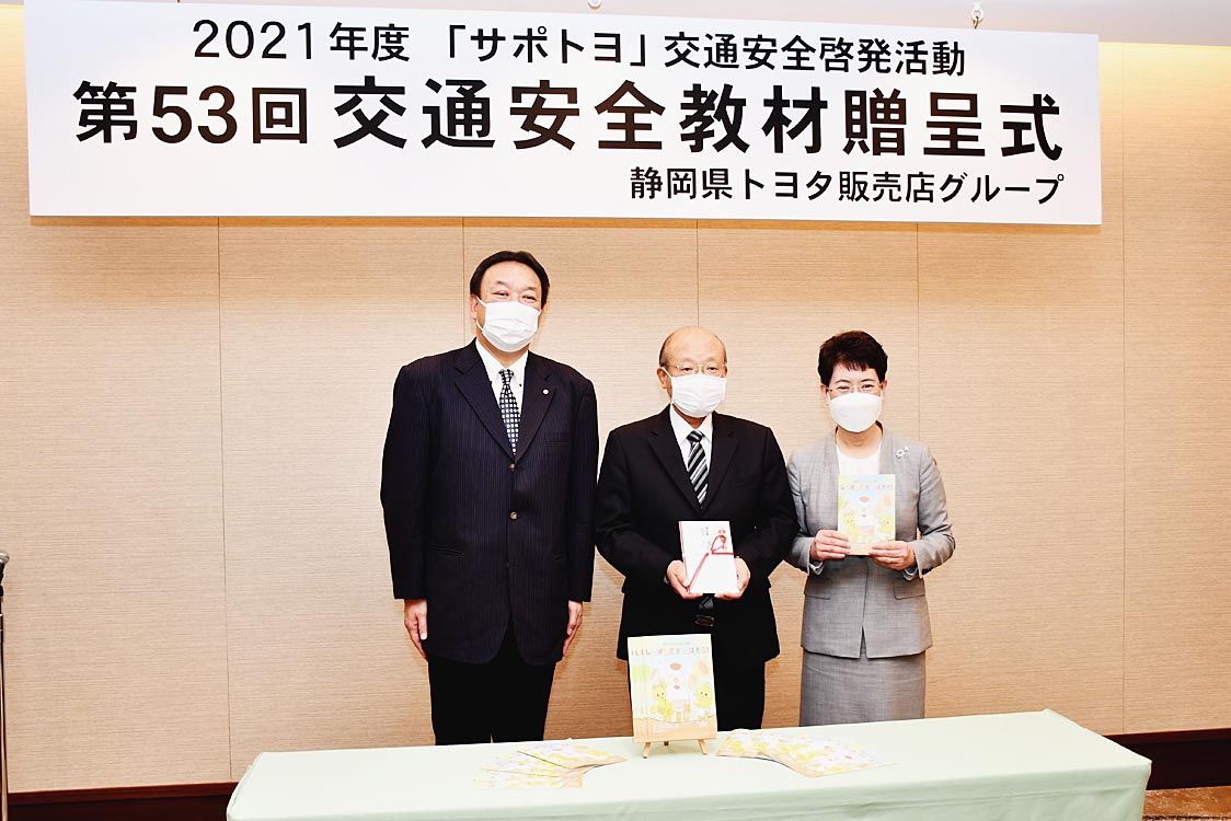 【静岡】静岡県内のトヨタ系ディーラー5社とトヨタレンタリース店2社、トヨタモビリティパーツ、トヨタL&F店の9社は、静岡市内のホテルで「2021年度サポトヨ交通安全啓発活動 幼児交通安全教材」の贈呈式を開催した。春の全国交通安全運動に合わ...