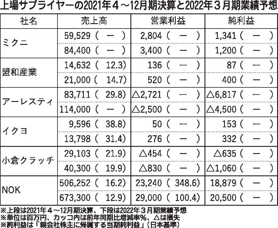 〈上場サプライヤーの2021年4~12月期決算と2022年3月期業績予想〉
