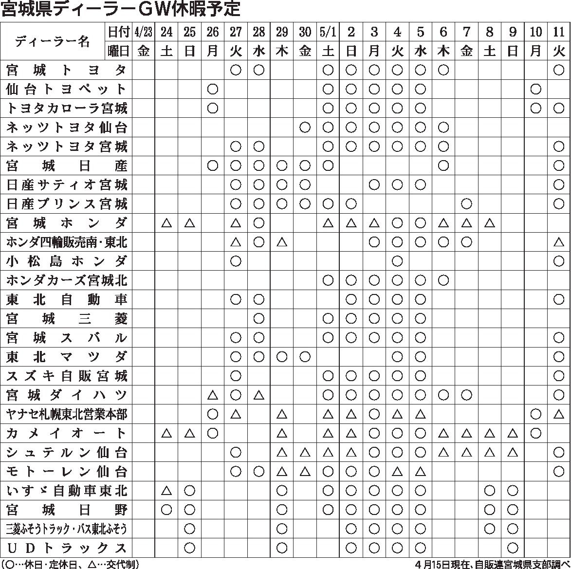 〈宮城県ディーラー 2021年GW休暇予定〉