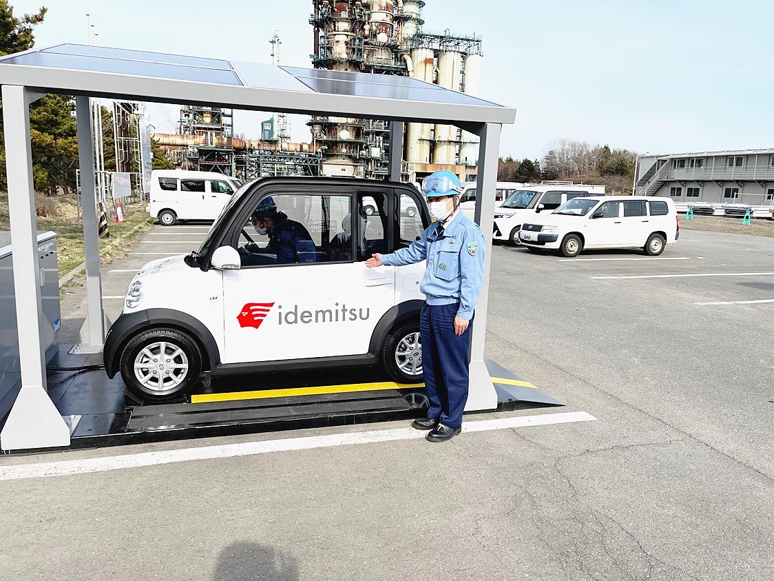 出光興産北海道製油所、超小型EVと蓄電池カーポートを導入