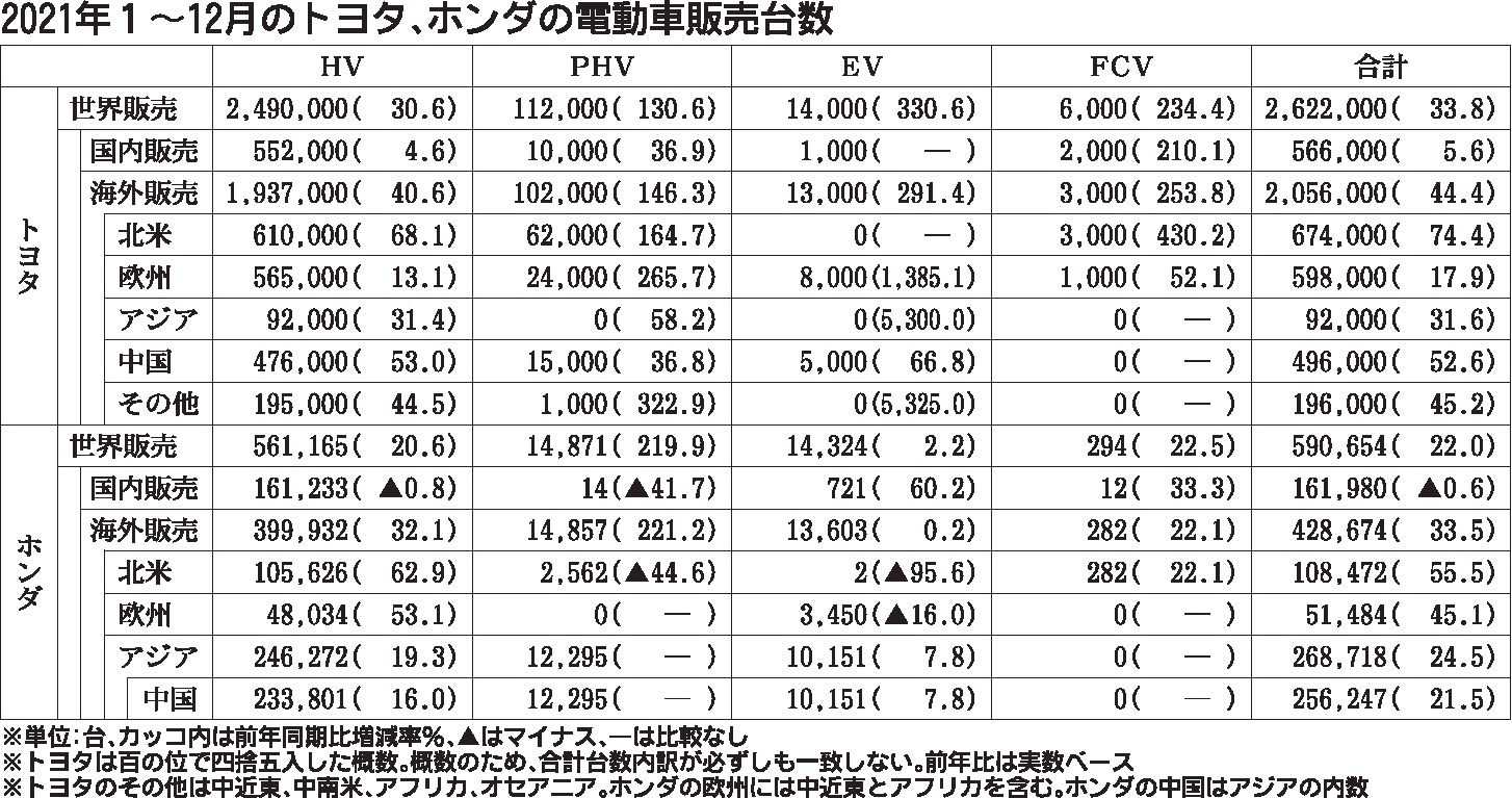 トヨタ・ホンダの2021年電動車販売、HVが急増 北米で6割超の伸び EV市場拡大の欧米や中国でも健闘