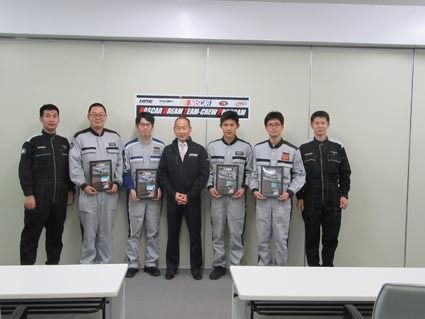 トヨタ東京自動車大学校(トヨタ東自大、松浪良樹校長、東京都八王子市)はこのほど、米ストックカーレース「NASCAR(ナスカー)」のライセンス入り記念プレートの授与式を行った。2015年のレースにスポット参戦した小林優一さんと重光慶祐さん、...