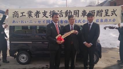 あいおいニッセイ同和岩手支店、岩泉商工会に軽1台を寄贈