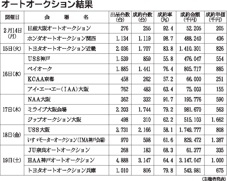 〈オートオークション結果〉近畿地区 2022/2/14~19