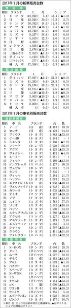【2017年1月の新車販売台数】