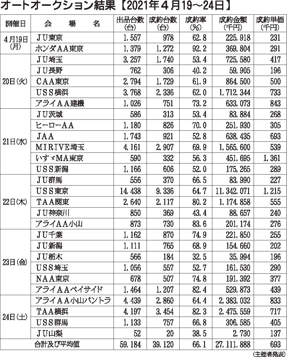 〈オートオークション結果〉首都圏 2021/4/19~24