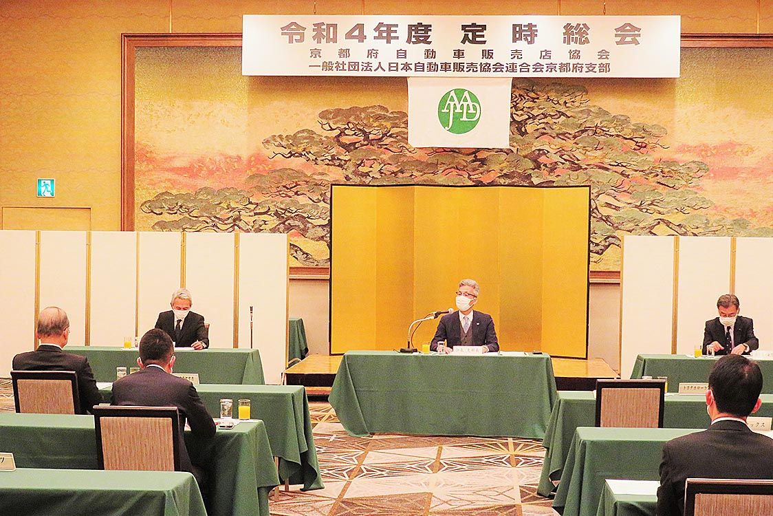 【京都】日本自動車販売店協会連合会(自販連)京都府支部(澤井孝之会長)・京都府自動車販売店協会(同会長)は、京都市下京区のホテルで「令和4年度通常総会」を開催した=写真。昨年度の事業報告、今年度の事業計画、収支予算など全議案を満場一致で承...
