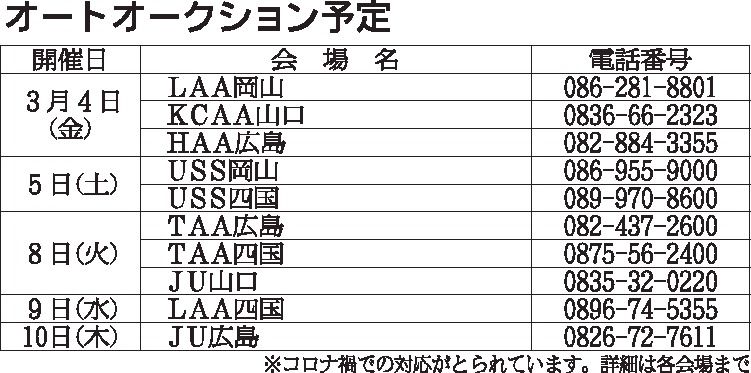 〈オートオークション予定〉中・四国地区 2025/12/26~2026/1/8