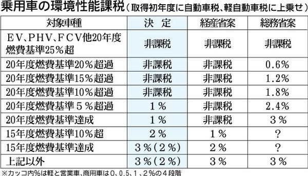 自民党税制調査会は9日、2017年度から軽自動車税と自動車税に上乗せして導入する「環境性能課税」の具体案を固めた。2020年度燃費基準10%超過車以上を非課税とし、残りは基準達成度に応じ車体価格(取得価額)の1~3%(軽と営業車は2%)を...