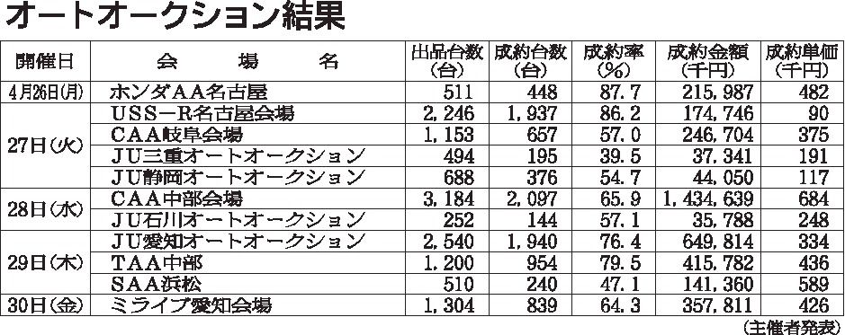 〈オートオークション結果〉中部地区 2021/4/26~30