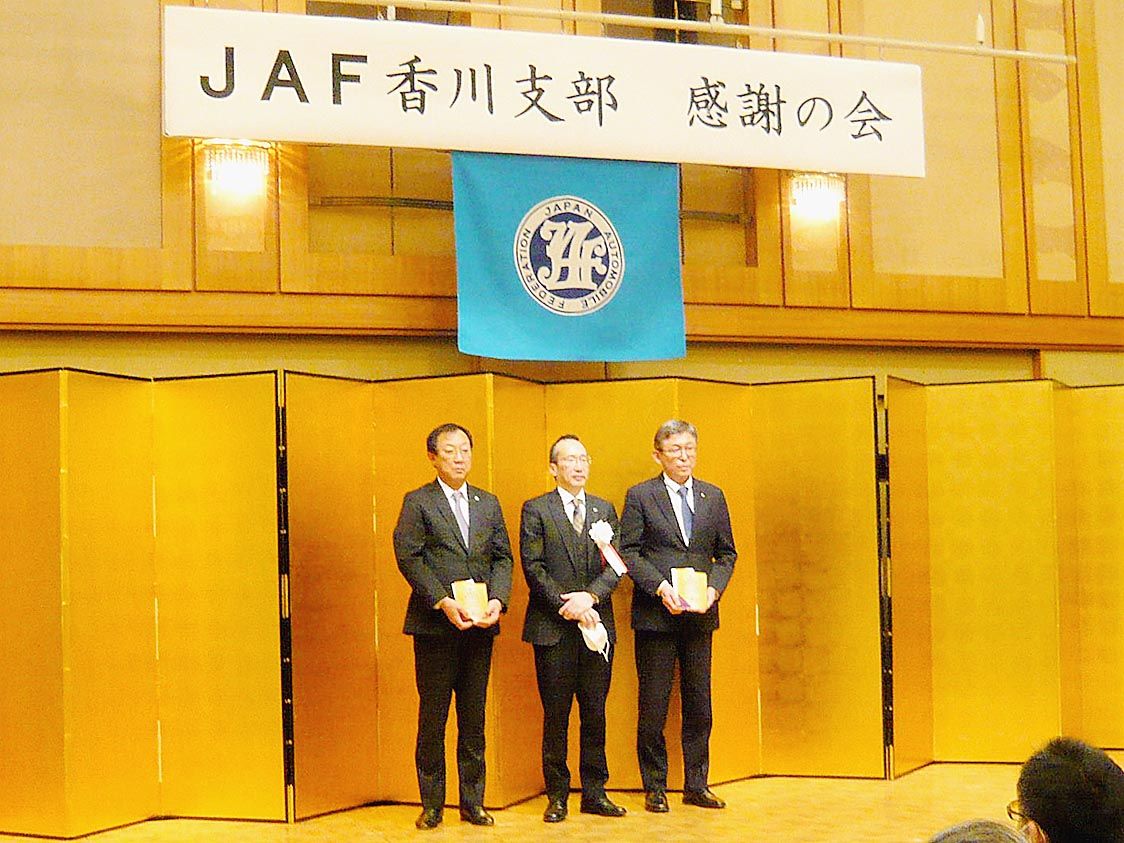 【高松】日本自動車連盟(JAF)香川支部(星合貴彦支部長)は、高松市内のホテルで「2021年感謝の会」を開き、JAF会員拡大に貢献したディーラーと社員を表彰した=写真。 星合支部長は「香川支部は皆さまのおかげで、昨年一年間で過去最高の92...