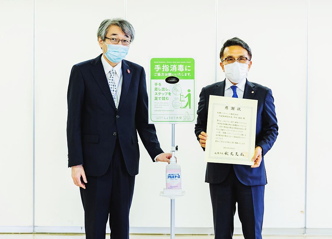 【札幌】札幌トヨペット(沖田俊弥社長)は、トヨタの足踏み式消毒スタンド「しょうどく大使」を札幌市保健福祉局に20台、札幌市円山動物園に15台をそれぞれ寄贈した。 各贈呈式の席上で沖田社長は、「コロナ禍の中で少しでも感染症拡大の抑止力になれ...