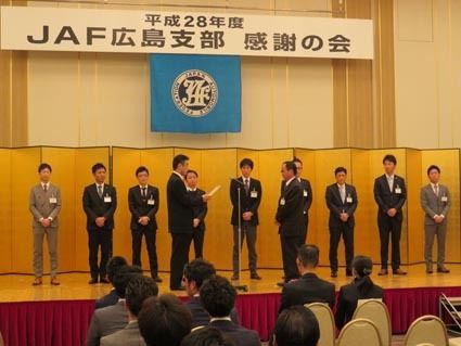 【広島】日本自動車連盟(JAF)広島支部(岡本精二支部長)は16日、ホテルグランヴィア広島(広島市南区)で「感謝の会」を開き、昨年の会員増加促進運動で優秀な成績をみせたディーラー関係者などに感謝状を贈った。ディーラー部門の個人優秀賞第一位...