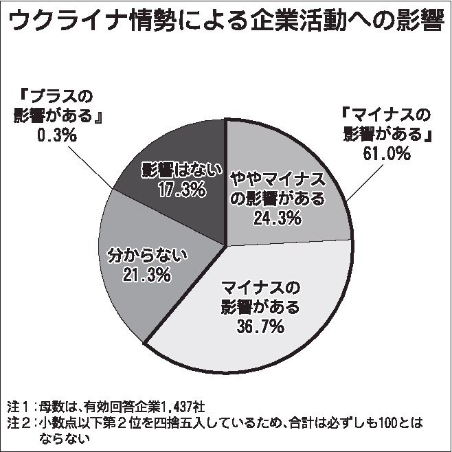 帝国データバンク(後藤信夫代表取締役、東京都港区)は、ロシアの軍事侵攻によって変化した「ウクライナ情勢」が企業活動に及ぼす影響を調査し結果をまとめた。これによると、「運輸・倉庫」の業種で8割の企業が「マイナスの影響がある」と見込む結果とな...