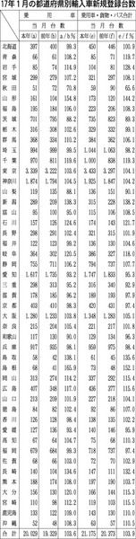 【17年1月の都道府県輸入車新規登録台数】