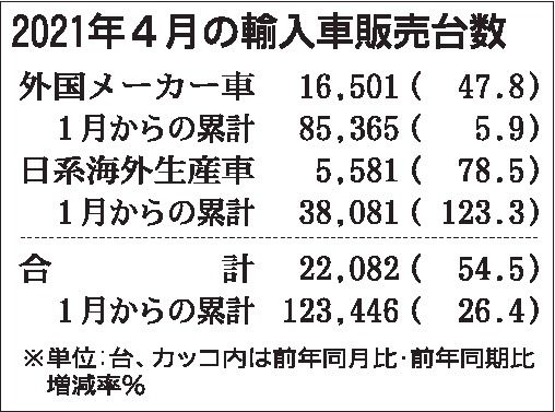 2021年4月の外国メーカー車販売、47.8%増 コロナ影響の反動増顕著に