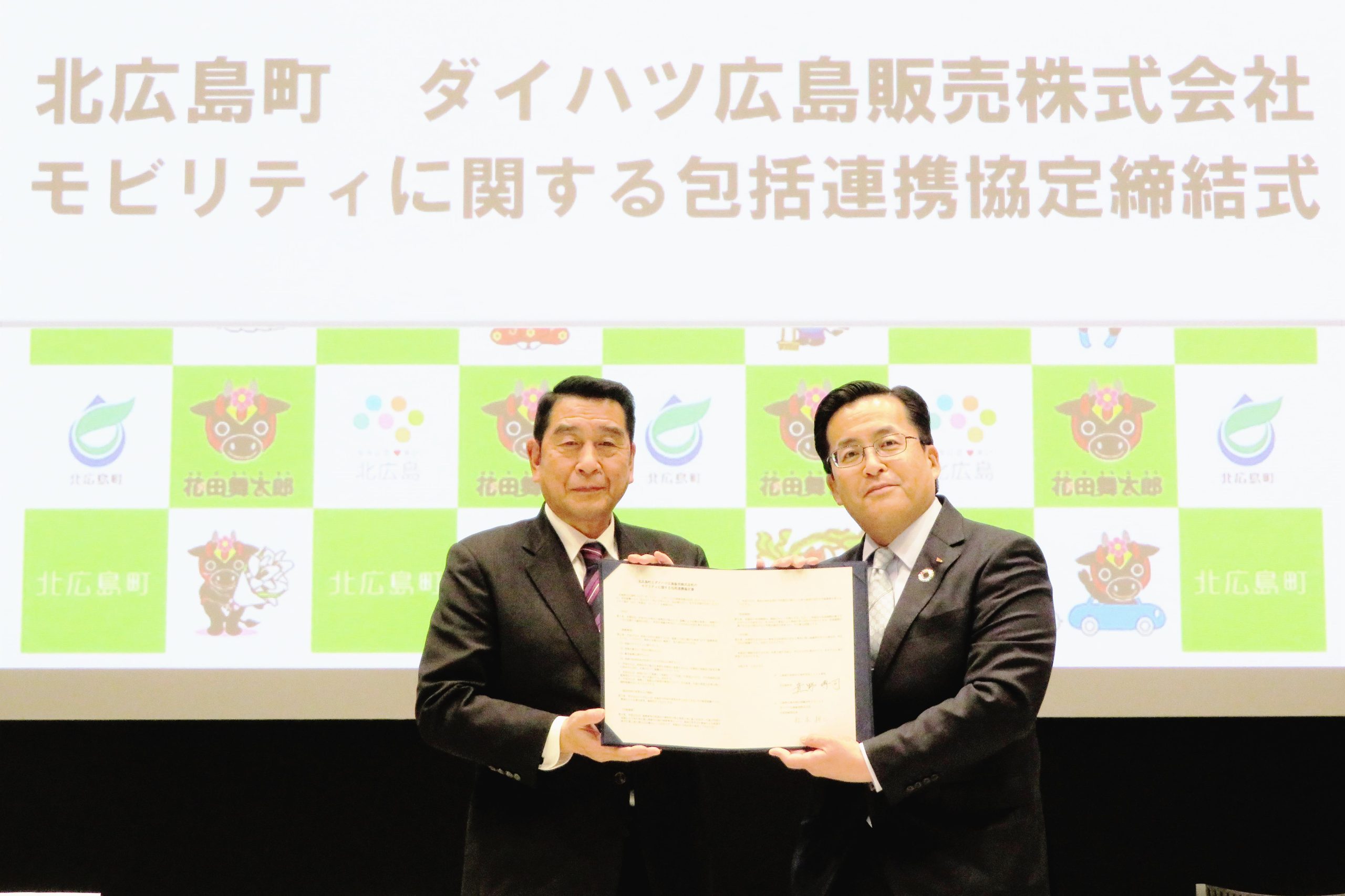 【広島】北広島町は、ダイハツ広島(松本耕二社長)とモビリティに関する包括連携協定を締結した=写真。地域のモビリティや暮らしと安全、環境振興などの課題解決に役立てるのが狙い。トヨタシェアによる観光に役立つカーシェア事業のほか、荷箱プロジェク...