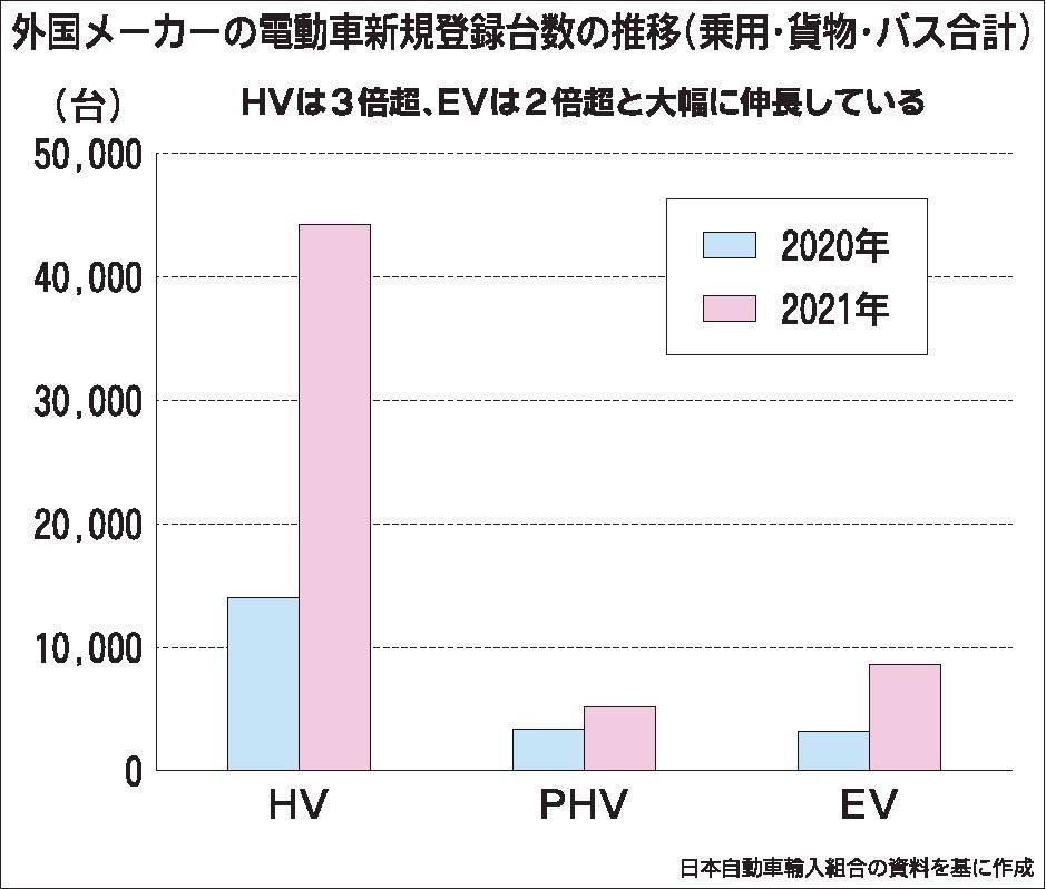2021年の新規登録台数が25万台となった外国メーカー車市場。このうち電気自動車(EV)の販売構成比は3・3%と、登録車全体に占める割合を大きく上回る。インポーターで構成する日本自動車輸入組合(JAIA)は、電動化対応など事業環境が大きく...