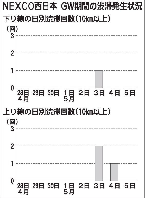 NEXCO西日本、GW期間中に10㌔以上の渋滞4回発生