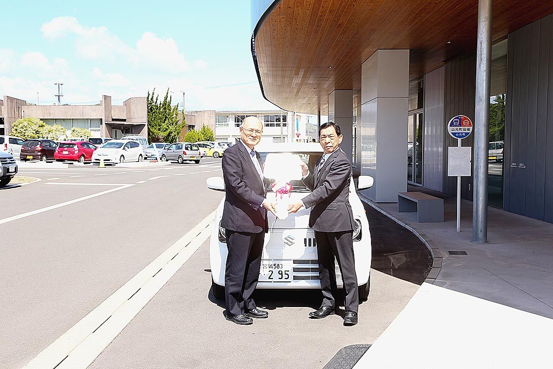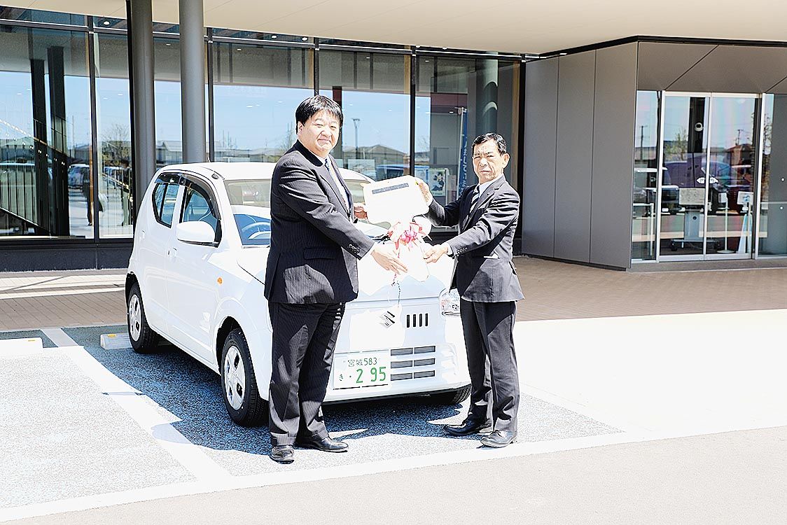 ナルケ自動車、地域への感謝でアルトを寄贈 宮城県山元町、亘理町に